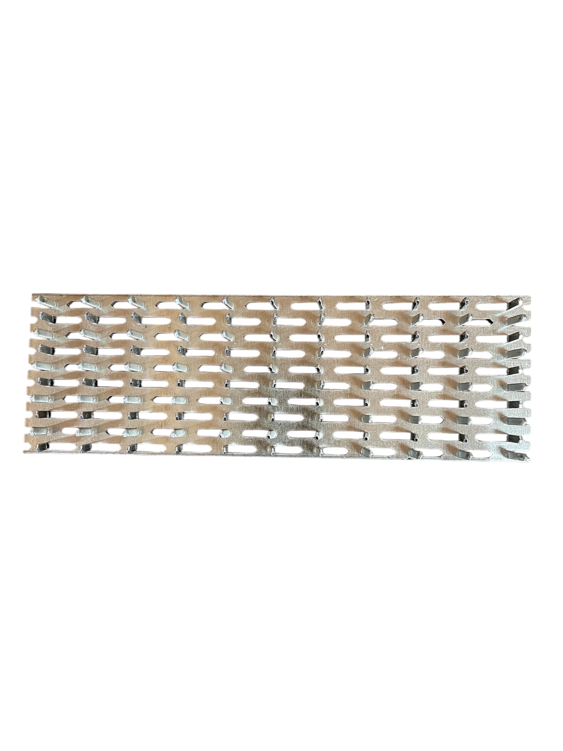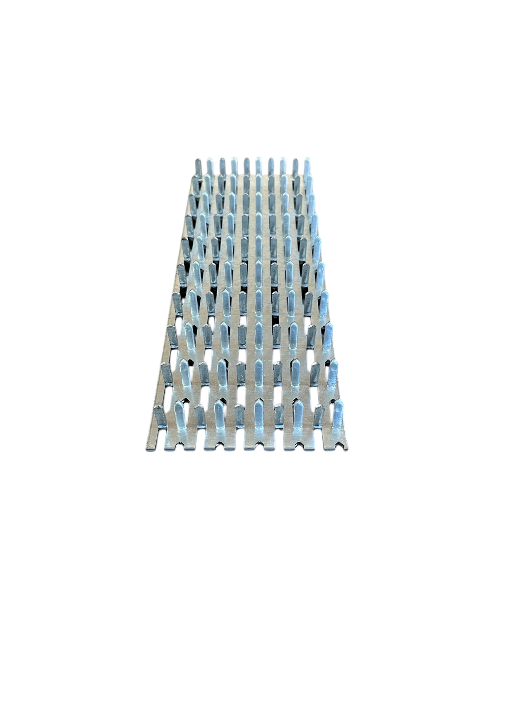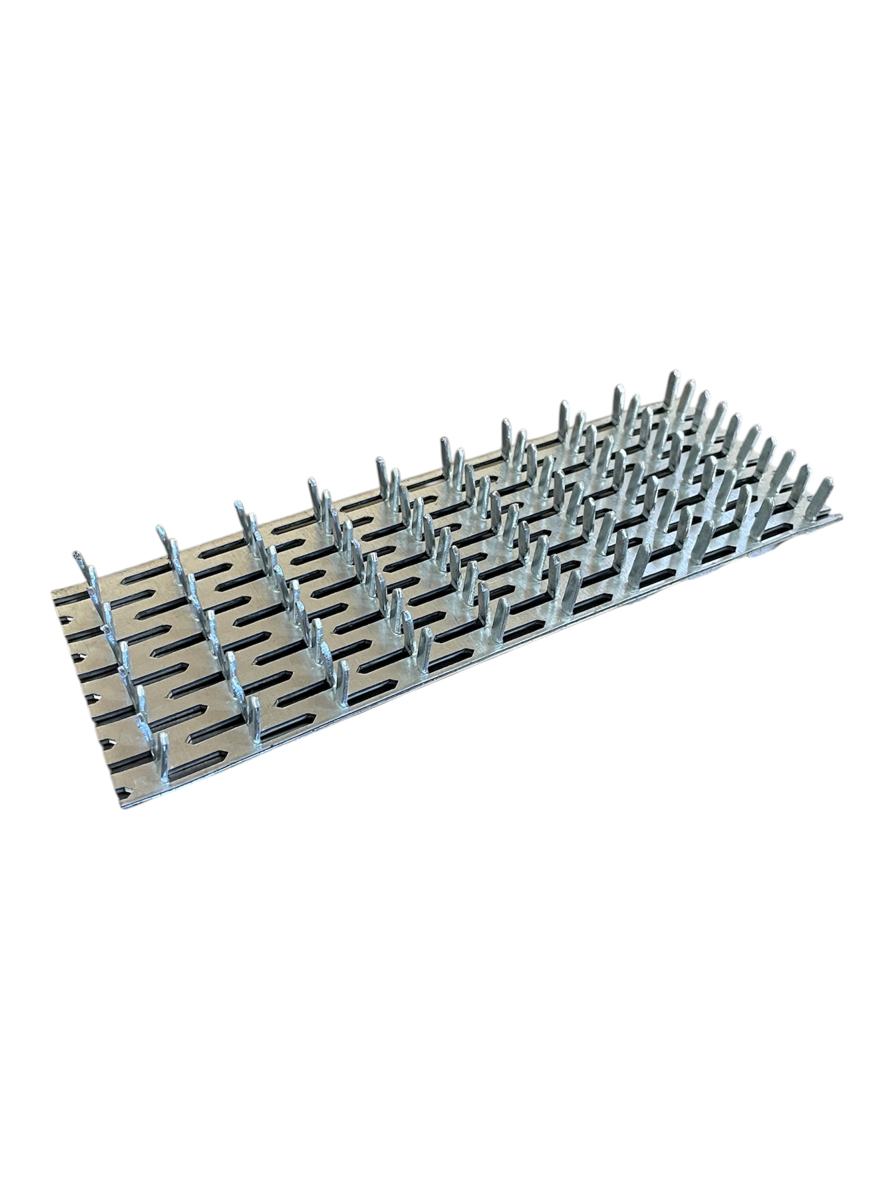 Можем изготовить любой размер длины данной платины под заказ клиента. Гвоздевая пластина – изделие, предназначенное для строительных и монтажных работ. Оно применяется для крепежа и соединения деревянных конструкций стропильного типа. По внешнему виду это пластина с острыми шиповидными возвышениями. Такой сплав возможен только благодаря использованию на производстве техники «холодной штамповки». Высота зубьев не выходит за пределы 8 мм. В состав входит оцинкованная сталь, что исключает коррозию изделия. Пластина крепится шипами вниз и под воздействием пресса (забивание молотком, киянкой, молоточком с резиновым бойком и тд) соединяется с древесиной.