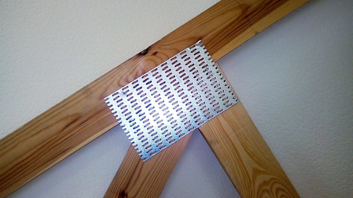 Гвоздевая пластина – изделие, предназначенное для строительных и монтажных работ.  Оно применяется для крепежа и соединения деревянных конструкций стропильного типа. По внешнему виду это пластина с острыми шиповидными возвышениями. Такой сплав возможен только благодаря использованию на производстве техники «холодной штамповки». В состав входит оцинкованная сталь, что исключает коррозию изделия. Пластина крепится шипами вниз и под воздействием пресса (забивание молотком, киянкой, молоточком с резиновым бойком и тд) соединяется с древесиной.